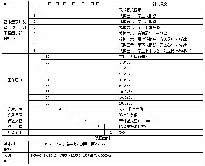 用戶訂貨時應按選型填寫型號并注明法蘭標準、測量范圍及對液位計的防腐蝕性要求。用戶如有特殊要求,請訂貨時說明。