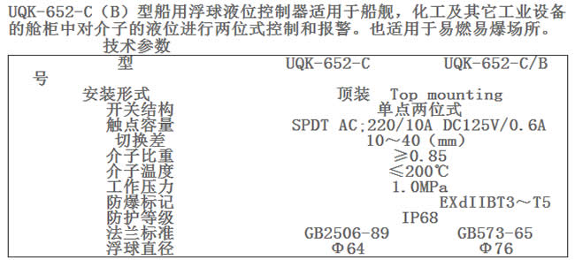 船用浮球液位控制器UQK-652-C-B:
